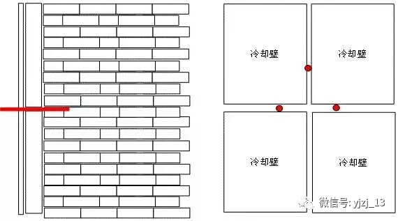 由于砌筑或生產(chǎn)過程中的熱膨脹現(xiàn)象,會在爐皮與冷卻壁間以及冷卻壁與爐缸炭磚之間產(chǎn)生氣塞,尤其在冷卻壁與炭磚之間的氣塞,會嚴(yán)重降低冷卻效率,致使炭磚熱面外擴,熔蝕加快。換角度說:只有消除氣塞,冷卻系統(tǒng)才會發(fā)生作用,將熱量傳遞出來,利于爐缸內(nèi)形成渣鐵保護層,促進爐缸的安全長壽。
