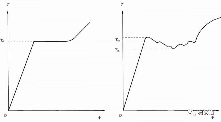 首次下降前的最大扭矩為上屈服扭矩,屈服階段中不計(jì)初始瞬間效應(yīng)的最小扭矩為下屈服扭矩。