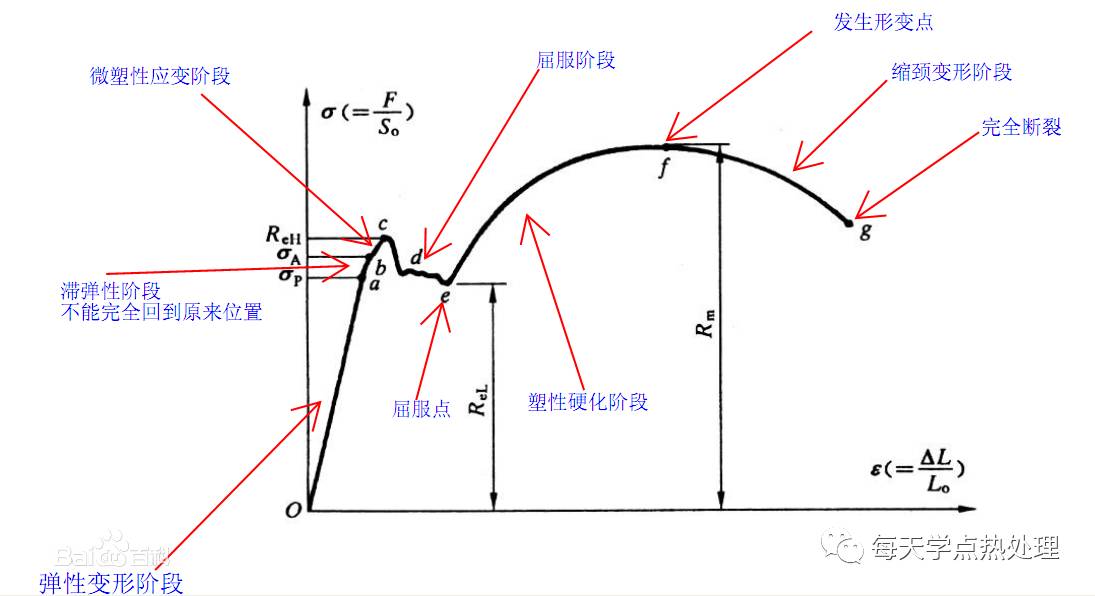當(dāng)應(yīng)力超過彈性極限后,進(jìn)入屈服階段后,變形增加較快,此時除了產(chǎn)生彈性變形外,還產(chǎn)生部分塑性變形。當(dāng)應(yīng)力達(dá)到b點后,塑性應(yīng)變急劇增加,應(yīng)力應(yīng)變出現(xiàn)微小波動,這種現(xiàn)象稱為屈服。這一階段的最大、最小應(yīng)力分別稱為上屈服點和下屈服點。由于下屈服點的數(shù)值較為穩(wěn)定,因此以它作為材料抗力的指標(biāo),稱為屈服點或屈服強度(ReL或Rp0.2)。