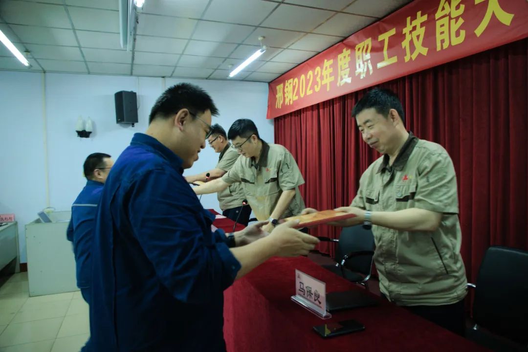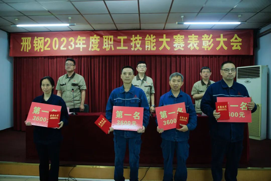 近日,邢臺鋼鐵有限責(zé)任公司在線材廠召開“2023年度職工技能比武大賽表彰會”,對取得優(yōu)異成績、表現(xiàn)突出的先進個人和集體進行表彰。公司總經(jīng)理彭世丹、副總經(jīng)理馬保良、韓清連為獲獎選手頒發(fā)榮譽證書并致賀。