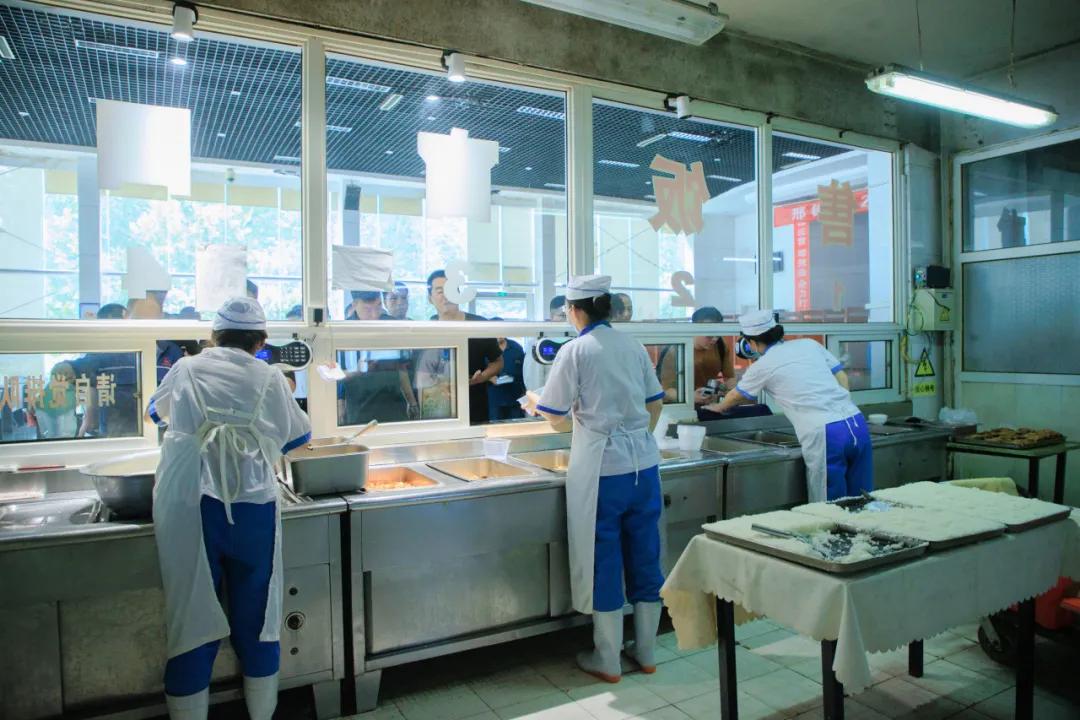 經(jīng)濟實惠。食堂以低于成本的價格向職工提供三餐,午餐中三肉兩素5元能吃飽吃好,鹵雞腿4元1個,獅子頭2元1個,黃燜雞塊、紅燒帶魚等5元1份,面條/饸饹面2.5元1份;早餐、晚餐2元能吃飽吃好,雞蛋0.5元1個,手抓餅1元1個,雞蛋灌餅含1雞蛋1.5元1個,肉夾饃3元1個。