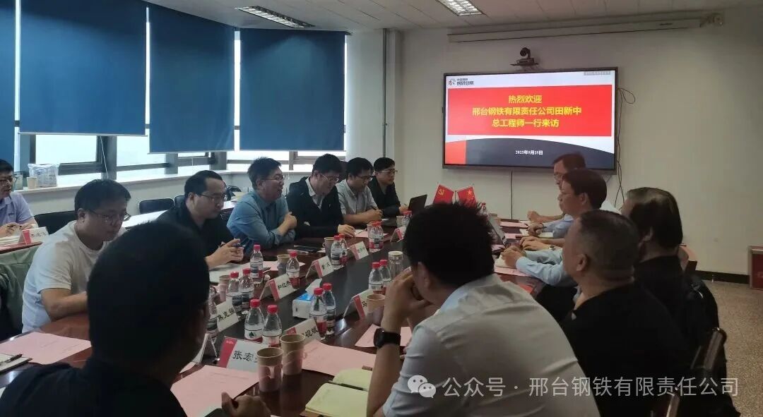 為推進產學研深度融合,助力產品工藝升級,9月25日下午,邢臺鋼鐵有限責任公司(下稱“邢鋼”)總工程師兼董事長、總經理助理田新中,率核心技術團隊赴北京,與我國冶金行業(yè)最大的綜合性研發(fā)機構——鋼鐵研究總院(下稱“鋼研總院”)開展專題技術交流。鋼研總院副總工程師曾加慶、冶金工藝研究所所長楊勇、特鋼院副總工程師馬黨參等專家出席交流活動。