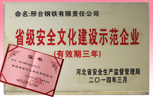 2015年1月16日,河北省安全生產(chǎn)協(xié)會(huì)在2014年度總結(jié)表彰會(huì)上授予邢鋼“安全生產(chǎn)先進(jìn)單位”榮譽(yù)稱號(hào)。