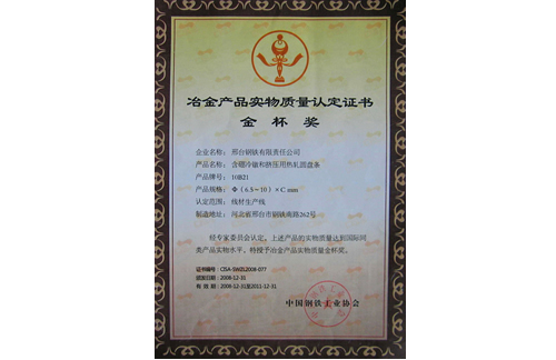 2009年2月,人力資源和社會保障部、中國鋼鐵工業(yè)協(xié)會授予邢鋼“全國鋼鐵工業(yè)先進集體”榮譽稱號。