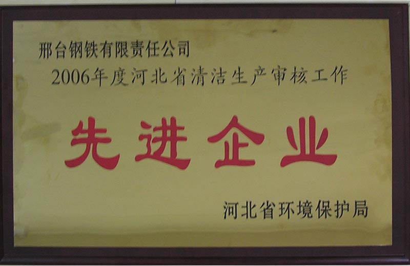 2007年8月,邢鋼榮獲河北省環(huán)保局頒發(fā)的“清潔生產(chǎn)審核先進(jìn)企業(yè)”榮譽(yù)稱號(hào)。