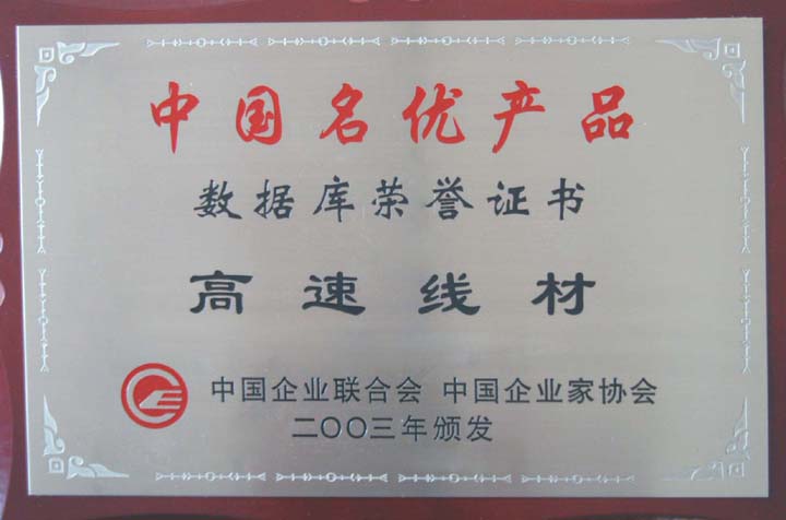 2003年,邢鋼高速線材獲中國名優(yōu)產(chǎn)品數(shù)據(jù)庫榮譽(yù)證書。