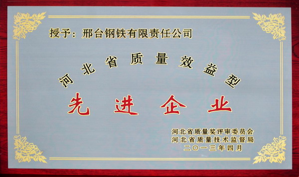 邢鋼線材(盤(pán)條)獲省名牌產(chǎn)品 公司獲省質(zhì)量效益型先進(jìn)企業(yè)
