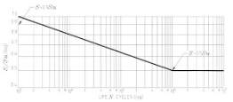 對(duì)很多金屬已經(jīng)進(jìn)行了大量的疲勞試驗(yàn)。從這些試驗(yàn)中,已經(jīng)開發(fā)出拉伸強(qiáng)度和循環(huán)次數(shù)的曲線圖。鍛鋼的一個(gè)例子如圖1所示。 在這個(gè)對(duì)數(shù)記錄圖上的垂直坐標(biāo)標(biāo)示出了施加的應(yīng)力與鋼的極限拉應(yīng)力“SU”的比例,而橫坐標(biāo)是應(yīng)力循環(huán)至失效的次數(shù)。SN曲線的左側(cè)表明,在高循環(huán)載荷下的鋼件產(chǎn)生的應(yīng)力占了拉伸強(qiáng)度的較大比例,在一定數(shù)量的循環(huán)之后就會(huì)失效。SN曲線的右側(cè)表明,如果循環(huán)應(yīng)力保持在可定義的極限以下,則部件將具有無限的壽命。曲線還告訴我們,如果一個(gè)鋼件只有一個(gè)加載周期,其應(yīng)力大于其拉伸強(qiáng)度,則該鋼件將失效(如當(dāng)一個(gè)小螺栓如果擰緊時(shí)斷開)。如果施加的應(yīng)力是拉伸強(qiáng)度的90%或更多,它也會(huì)在小于一千個(gè)周期內(nèi)失效。但如果應(yīng)力保持在抗拉強(qiáng)度的一半以下,它就不會(huì)疲勞。