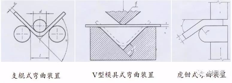 彎曲試驗(yàn)通常在萬(wàn)能材料試驗(yàn)機(jī)或壓力機(jī)上進(jìn)行;常用的彎曲裝置有支輥式、V型模具式、虎鉗式、板式等。