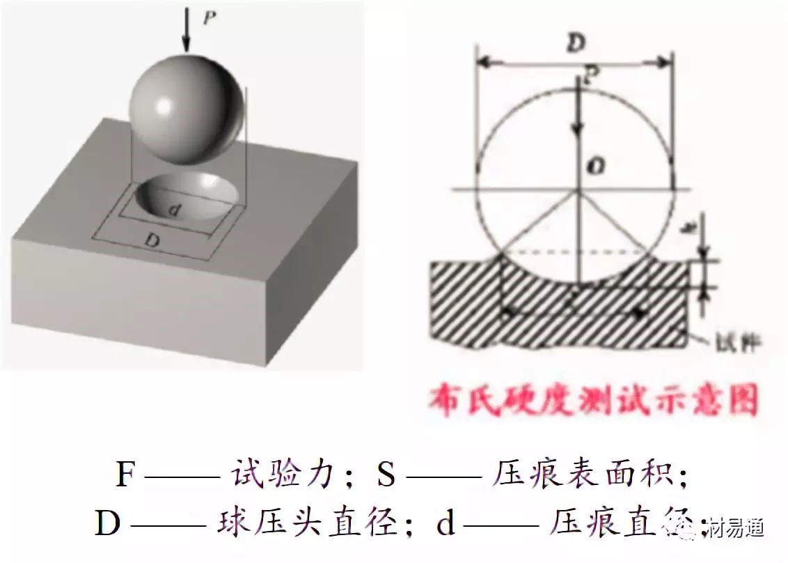 原理:用一定直徑的壓頭(球體),以相應(yīng)試驗(yàn)力壓入待測(cè)表面,保持規(guī)定時(shí)間卸載后,測(cè)量材料表面壓痕直徑,以此計(jì)算出硬度值。