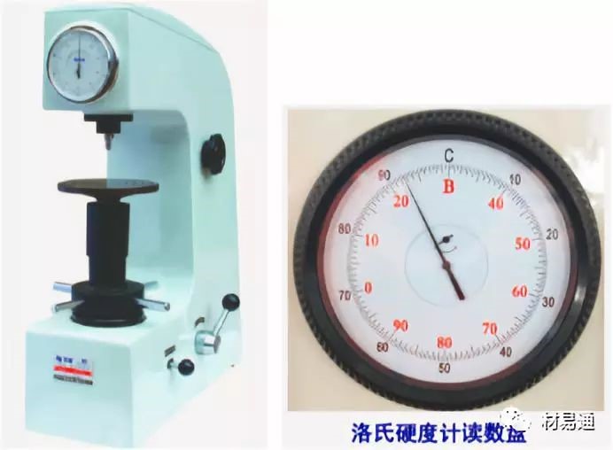 原理:用金剛石圓錐或淬火鋼球壓頭,在試驗(yàn)壓力F的作用下,將壓頭壓入材料表面,保持規(guī)定時(shí)間后,去除主試驗(yàn)力,保持初始試驗(yàn)力,用殘余壓痕深度增量計(jì)算硬度值,實(shí)際測(cè)量時(shí),可通過試驗(yàn)機(jī)的表盤直接讀出洛氏硬度的數(shù)值。