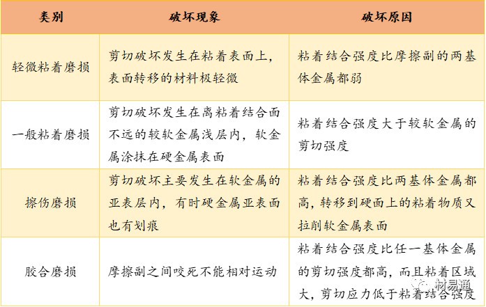 當(dāng)摩擦副相對滑動時(shí), 由于粘著效應(yīng)所形成結(jié)點(diǎn)發(fā)生剪切斷裂,被剪切的材料或脫落成磨屑,或由一個(gè)表面遷移到另一個(gè)表面,此類磨損稱為粘著磨損。