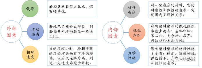 磨損按磨損機(jī)理可分為粘著磨損、磨粒磨損、疲勞磨損、腐蝕磨損、沖蝕磨損、微動磨損,按環(huán)境介質(zhì)可分為干磨損、濕磨損、流體磨損。