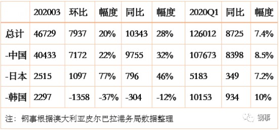 總的來看,澳大利亞的鐵礦石出口目前并未受到疫情的影響,并且在快速增加,今年前2個(gè)月,黑德蘭港的出口量同比減少了161.8萬噸,降幅為2%,而到3月底時(shí)實(shí)現(xiàn)了7.4%的同比正增長。另一方面,韓國自黑德蘭港進(jìn)口的鐵礦石占比較大,3月份數(shù)據(jù)的大幅下滑可能反映出其鋼鐵生產(chǎn)強(qiáng)度的下降,減少了對鐵礦石的需求。日本則還需要進(jìn)一步的數(shù)據(jù)來觀察和分析。今年前2個(gè)月,韓國粗鋼產(chǎn)量減少3.4%,鐵礦石進(jìn)口量增加了1.4%,日本粗鋼產(chǎn)量增加1.7%,礦石進(jìn)口量則減少了1.8%;總體變化都不大,3月份或許是個(gè)開始。(中國冶金報(bào))