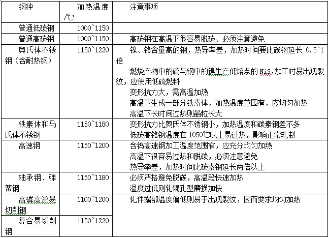 特別注意的是:對(duì)于碳鋼加熱溫度一般不能大于1300℃,大于此溫度,其一,鋼坯表面的氧化鐵皮會(huì)熔化(純氧化鐵皮的熔點(diǎn)為1377~1565℃,含有雜質(zhì)時(shí)降到1300~1350℃),從鋼表面上掉下來(lái),露出新的表面,燒損迅速增加。其二,當(dāng)加熱溫度大于1300℃時(shí),鋼坯很有可能會(huì)出現(xiàn)過(guò)熱或過(guò)燒。生產(chǎn)其它鋼種時(shí)更應(yīng)該注意最高加熱溫度。