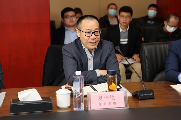 建龍集團副總裁夏佳銓對永年地區(qū)客戶長期以來給予邢鋼的支持表示感謝,向客戶介紹了建龍集團“雙五千萬噸”的發(fā)展目標(biāo),做強高端工業(yè)用材的的發(fā)展思路,以及實現(xiàn)“四個轉(zhuǎn)型”的發(fā)展方向。指出:“建龍集團對邢鋼的未來發(fā)展充滿信心,將從各方面進(jìn)行全面支持,邢鋼高質(zhì)量的冷鐓鋼產(chǎn)品今后將充分滿足永年客戶的需求,并實現(xiàn)與客戶的雙贏和共同成長”。對客戶提出的交貨期問題、質(zhì)量問題,要求邢鋼銷售部門與研發(fā)部門、生產(chǎn)部門加強聯(lián)動,快速反應(yīng),提升客戶的滿意度,重塑邢鋼形象。