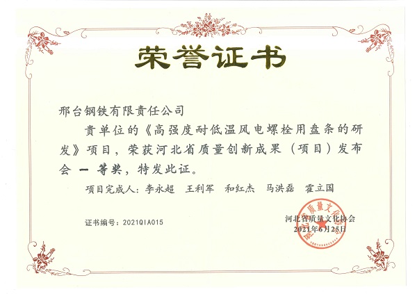 近日,由河北省質(zhì)量文化協(xié)會(huì)主辦的“河北省第四屆質(zhì)量創(chuàng)新成果(項(xiàng)目)發(fā)布會(huì)”在秦皇島召開,邢鋼精益六西格瑪代表團(tuán)3個(gè)成果入圍發(fā)布會(huì)名單,其中《高強(qiáng)度耐低溫風(fēng)電螺栓用盤條的研發(fā)》和《提高不銹鋼1Cr13澆次連澆爐數(shù)》榮獲一等獎(jiǎng),《提高Q55SiCrA-1線材成材率》榮獲二等獎(jiǎng)。