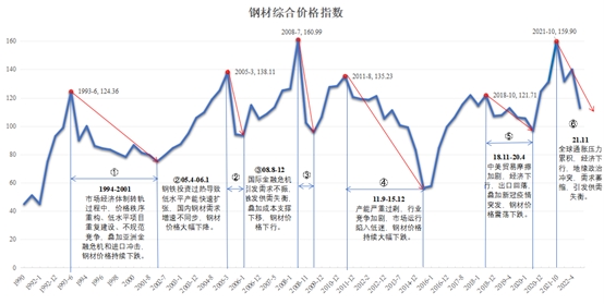 圖1 1990年以來我國鋼材價格綜合指數(shù)變化趨勢