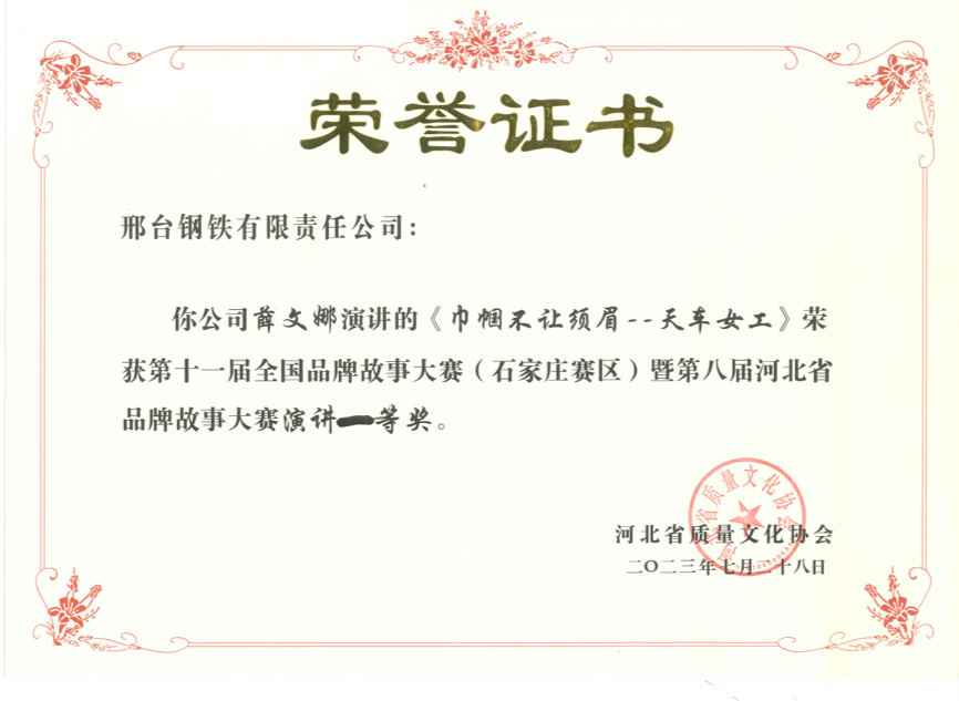大賽分演講、征文、短視頻、微電影四個板塊,共有170余個作品進入決賽。通過層層角逐,邢鋼品牌故事系列作品再獲佳績:其中,《巾幗不讓須眉——天車女工的故事》獲演講比賽一等獎,《三人行,事遂功成》獲演講比賽二等獎;《小小扭力桿,安全你我他》《三人行,走在精品之路上》《鏗鏘玫瑰,空中獨舞》獲征文比賽二等獎,《星火燎原,邢鋼精神永相傳》獲征文比賽三等獎;《長風破浪,未來可期》獲短視頻三等獎。