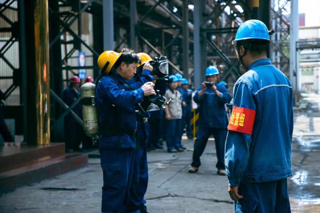 隨后,參會(huì)人員一起現(xiàn)場(chǎng)觀摩了邢鋼高溫熔融金屬爆噴事故現(xiàn)場(chǎng)應(yīng)急處置演練。本次演練,模擬煉鋼廠加料跨天車(chē)向2#轉(zhuǎn)爐加廢鋼時(shí)發(fā)生爆噴為背景,演示了事故上報(bào)、安全疏散、預(yù)案啟動(dòng)、現(xiàn)場(chǎng)搶險(xiǎn)、應(yīng)急救援等環(huán)節(jié)。