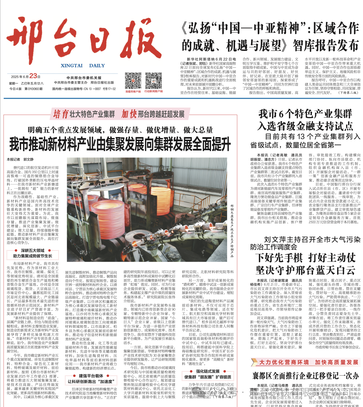 今年,我市確定新材料產(chǎn)業(yè)五個重點發(fā)展領(lǐng)域,涉及先進鋼鐵材料、特種合金、綠色化工新材料、特種玻璃及玻纖材料、前沿新材料。按照《邢臺市新材料產(chǎn)業(yè)發(fā)展2025年工作要點》部署,將著力推進五大領(lǐng)域集聚發(fā)展,使技術(shù)往高端、產(chǎn)品往終端發(fā)展,越來越多關(guān)鍵材料實現(xiàn)國產(chǎn)化突破,更多高性能新材料落地。