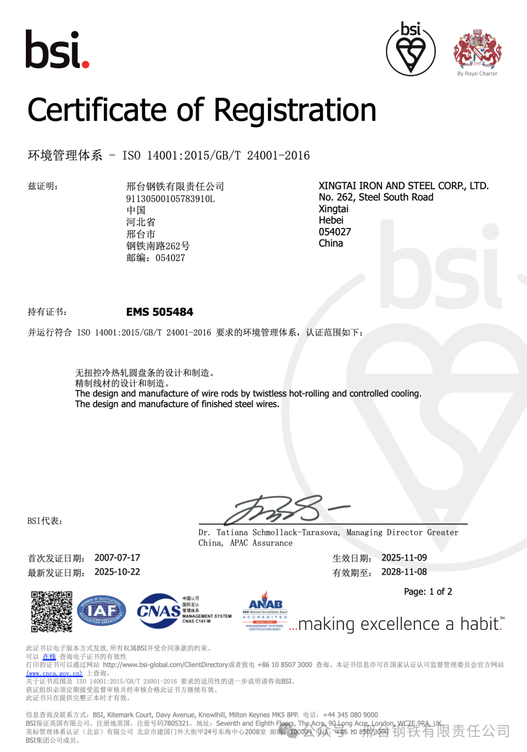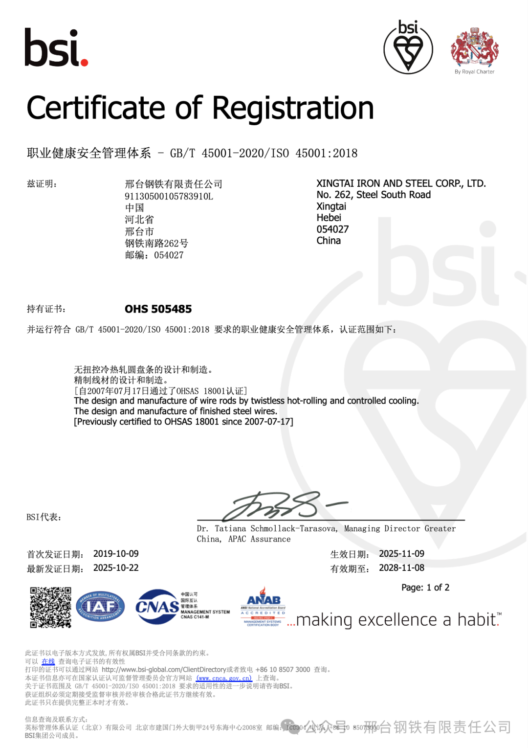 近日,邢臺(tái)鋼鐵有限責(zé)任公司(簡(jiǎn)稱(chēng)“邢鋼”)順利通過(guò)英國(guó)標(biāo)準(zhǔn)協(xié)會(huì)(BSI)對(duì)其職業(yè)健康安全管理體系與環(huán)境管理體系的再認(rèn)證審核,取得新版證書(shū)。該公司自2007年首次通過(guò)該體系認(rèn)證以來(lái),已連續(xù)十八年保持體系持續(xù)有效運(yùn)行,體現(xiàn)出在安全與環(huán)境管理方面長(zhǎng)期穩(wěn)定的合規(guī)能力和管理韌性。